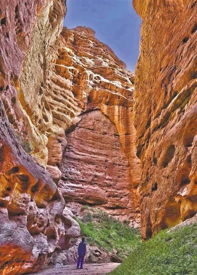 在“云直播”中,蒙古族姑娘有過(guò)這樣的描述:平山湖大峽谷海拔高度1500至2550米,其地質(zhì)構(gòu)造屬于紅層地貌,是中生代侏羅紀(jì)至新生代第三紀(jì)沉積形成的“紅色沙礫巖”,距今已有一億八百萬(wàn)年至兩億四千萬(wàn)年。大峽谷從谷底到頂部分布著從寒武紀(jì)到新生代各個(gè)時(shí)期的巖層,層次清晰,色調(diào)各異,并且含有各個(gè)地質(zhì)年代的代表性生物化石,又被稱為“活的地質(zhì)史教科書”。