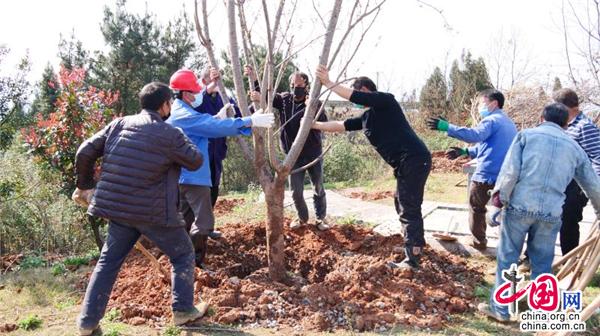 合力扶苗、揮鍬填土、踩實壓緊、提桶澆水……3月10日,在湖南省武岡市荷塘村義務植樹基地,黨員群眾分工協(xié)作、相互配合,每個環(huán)節(jié)都一絲不茍。經(jīng)過一上午的忙碌, 一棵棵櫻花樹迎風挺立,把山頭裝點得綠意盎然。今年,武岡繼續(xù)啟動55個美麗鄉(xiāng)村綠化美化建設,繼續(xù)改善城鄉(xiāng)環(huán)境,提高人民群眾的獲得感和幸福感,為爭創(chuàng)省級森林城市“添磚加瓦”。