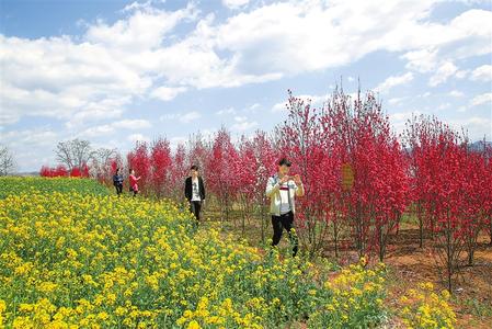 郭坪的麗桃花多為紅色,那紅,于深紅中又透著一種清麗的粉,使繁盛的花朵,飽滿中又呈現(xiàn)出一種吹彈可破的輕盈,而沁人心脾的花香,又使人忍不住就想把臉埋在繁花間,把花香全都嗅進(jìn)五臟六腑。此時(shí),花株猶如無(wú)數(shù)把紅傘,傘下,五顏六色的衣裳與花樹(shù)相映成趣。樹(shù)上的花對(duì)著人笑,地上的人對(duì)著花笑。“去年今日此門中,人面桃花相映紅。人面不知何處去,桃花依舊笑春風(fēng)。”崔護(hù)的詩(shī)也不知不覺(jué)從腦海里跳將出來(lái)。傳說(shuō)詩(shī)人崔護(hù)的這首《題都城南莊》寫的是,他進(jìn)京考進(jìn)士落第,一個(gè)人悵然走到京城南郊。走得口渴到一戶人家討水,一美麗女子站在庭院的桃花下,嬌羞地把一瓢水遞給了他,那女子的美貌驚艷了詩(shī)人的眼睛。第二年春天崔護(hù)復(fù)來(lái)南莊,然而那座庭院里,桃花依然如故,而樹(shù)下卻不見(jiàn)了佳人的芳蹤,于是留下此詩(shī)。面對(duì)花海,也許你會(huì)突發(fā)奇想,如果崔護(hù)能在詩(shī)里復(fù)活,想必他一定也會(huì)來(lái)郭坪的麗桃花海走一遭,那么這首詩(shī)一定會(huì)是另外的意境了。因?yàn)榇藭r(shí)的花樹(shù)下,滿是顧盼生輝的佳人,也不知崔護(hù)要題詩(shī)給哪一位女子了。
