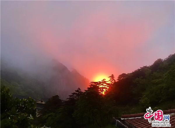 每逢五月,杜鵑花如約而至,用思慮了一冬的巧思把黃山的每一個(gè)角落都裝扮一新,給連綿不絕的山崗披上了五彩的織錦。經(jīng)過了一冬的蟄伏和等待,杜鵑鉚足了勁兒,花團(tuán)錦簇的熱情如“燃”起的火把,紅透了半邊天。黛青色的遠(yuǎn)山縹緲幽遠(yuǎn),參天的松柏枝繁葉茂,淡而薄的云霧似有還無,杜鵑的姹紫嫣紅給黃山這幅意蘊(yùn)悠長的水墨畫增添了幾分濃墨重彩,黃山更加靈動(dòng)秀美了。最壯觀的當(dāng)屬日出日落時(shí)分了,天邊的紅霞好似在花枝間流連,墜入花叢般和散落一地的杜鵑相互輝映、渾然一體。