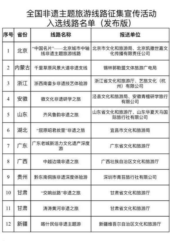“全國(guó)非遺主題旅游線路征集宣傳活動(dòng)”入選線路名單