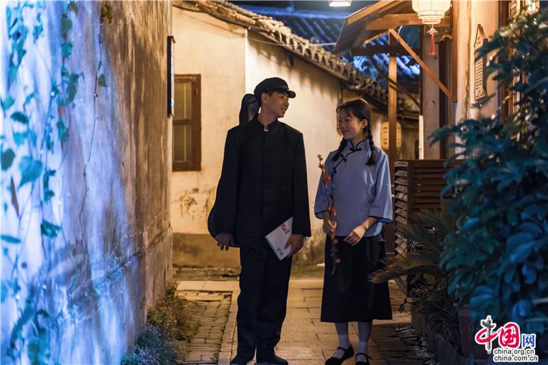 街巷里的年輕演員們于夜色闌珊中演繹著古鎮(zhèn)之風(fēng)華正茂。