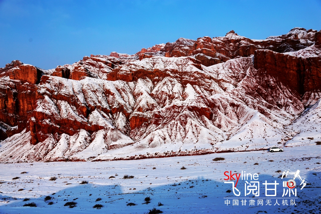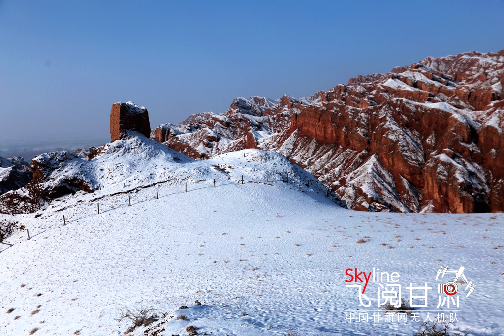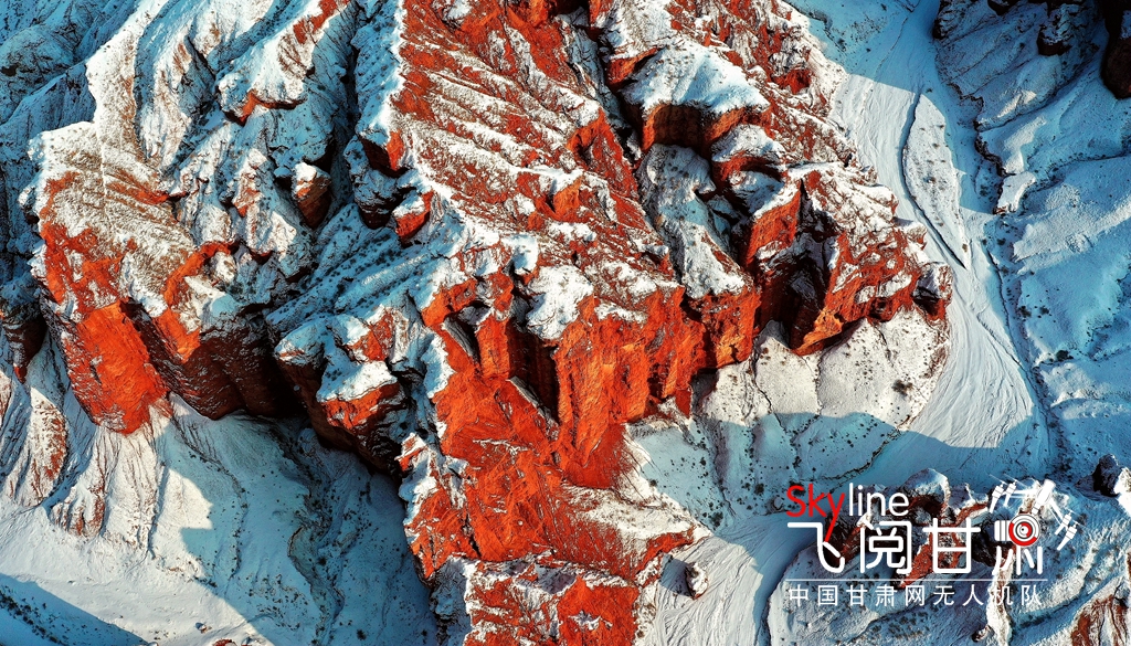 12月9日,甘肅省張掖市臨澤縣板橋鎮(zhèn)紅溝丹霞景區(qū),雪后初晴,丹霞披紗,更顯赤艷,成為冬日的一道靚麗風(fēng)景。