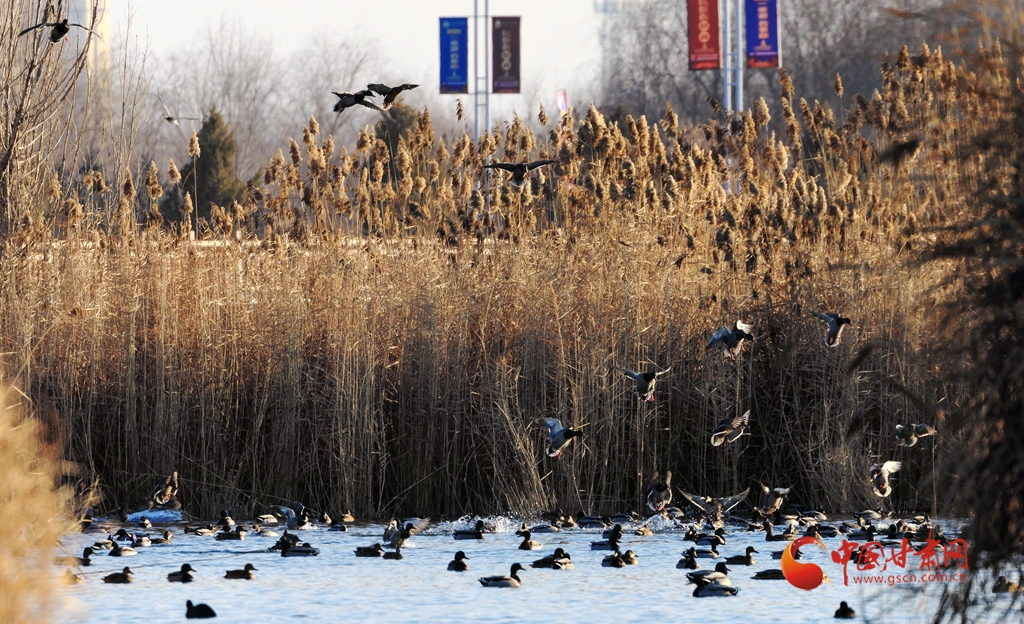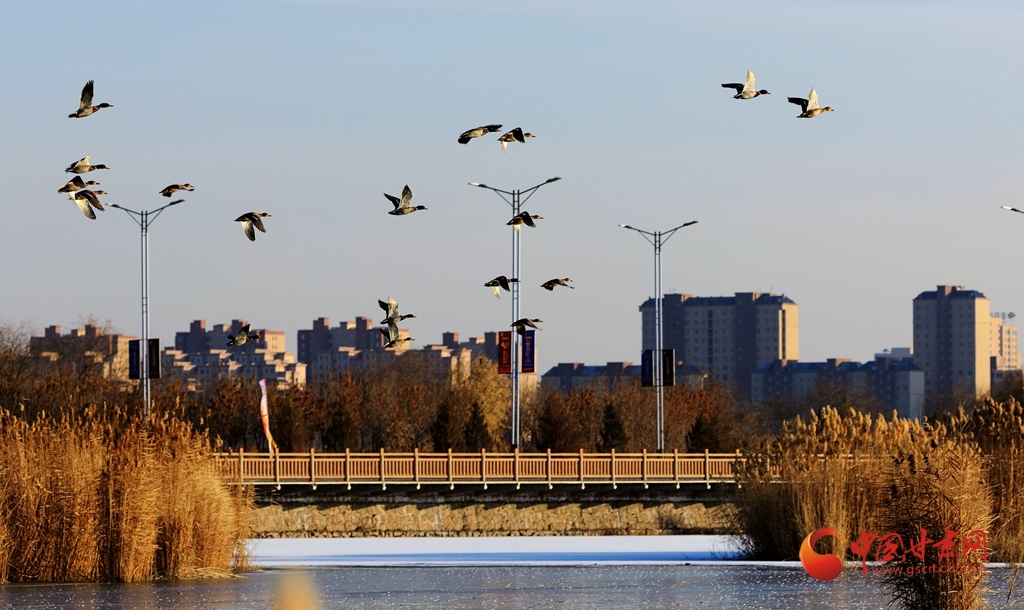 【隴拍客】甘肅張掖:蘆葦蕩里鴨戲水 冬日公園添生趣