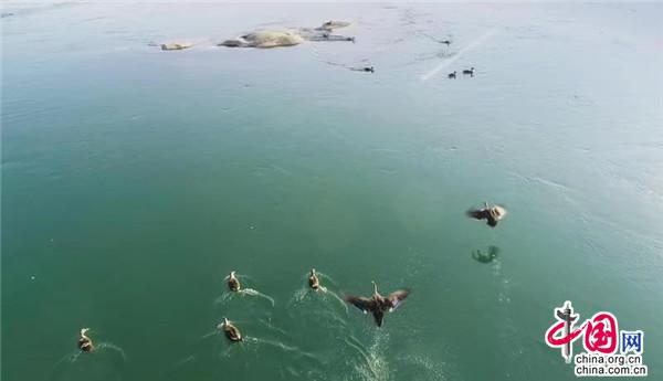 1月12日,在湖南桃江羞女湖國家濕地公園當(dāng)?shù)財(cái)z影家協(xié)會(huì)成員用無人機(jī)有幸拍到一群正在資江戲水的野生保護(hù)物種——斑嘴鴨。