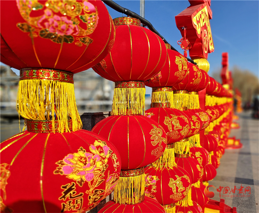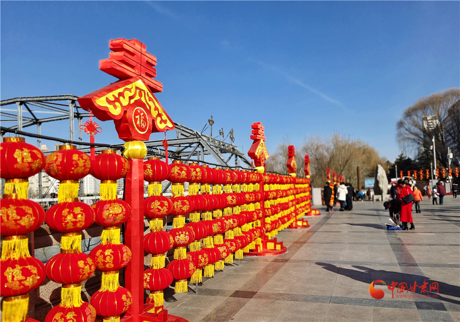 中國(guó)紅更配中國(guó)年,2月3日,記者在蘭州中山橋看到,中山橋廣場(chǎng)完成了節(jié)日亮化,火紅的燈籠搭配春天的裝飾,讓百年鐵橋在喜慶中迎接新春,吸引游客前來打卡拍照。
