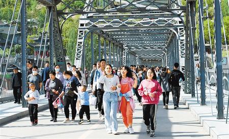 5月5日,蘭州中山橋上游人如織。新甘肅·甘肅日?qǐng)?bào)記者 呂亞龍