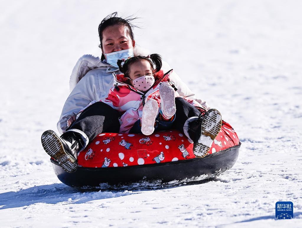 2月19日,市民在寧夏銀川市閱海滑雪場玩耍。