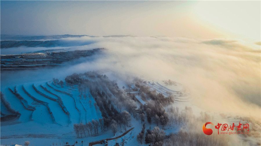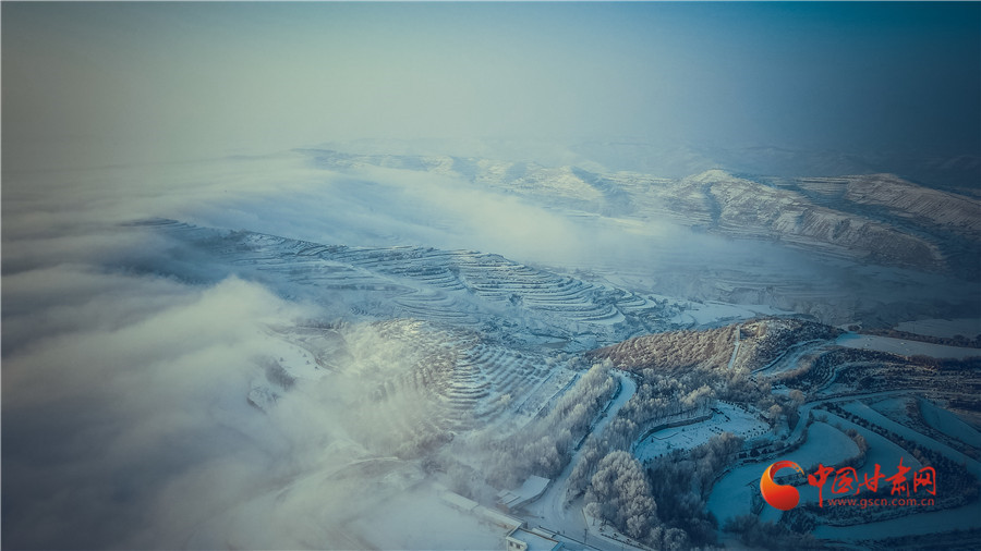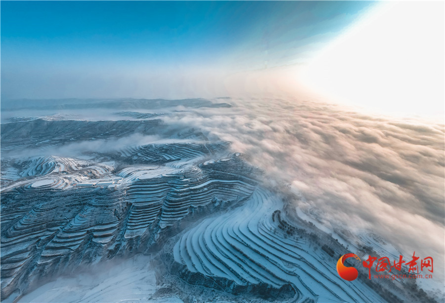 俯瞰雪后的梯田,