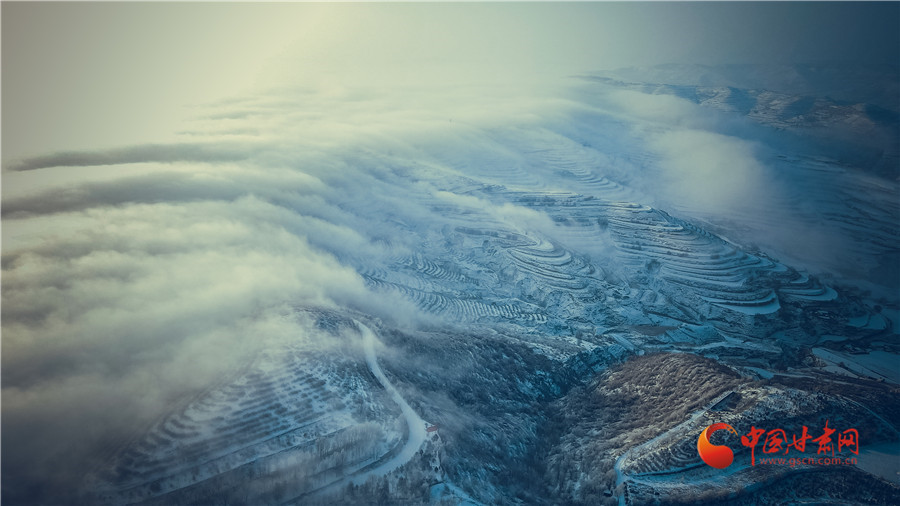 蘭州榆中的上空,穿越云??瓷酱ā?/p>
