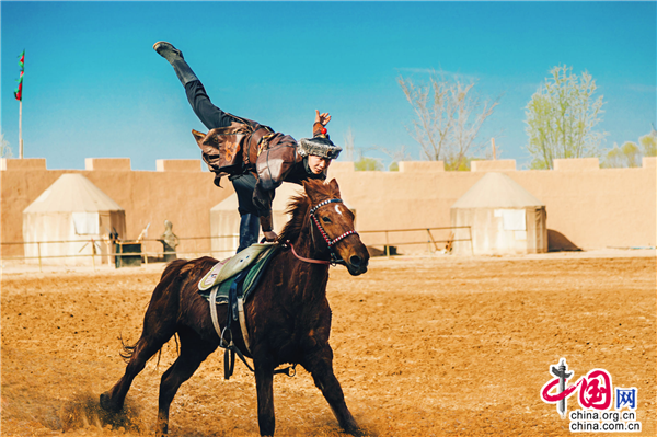 除此之外,游客在景區(qū)擂臺處不僅能夠觀看驚險刺激的市井雜耍,還有每天兩場的樂隊表演不容錯過。擂臺不遠處就是今年4月1日全新推出的實景馬戰(zhàn)《烽火西夏》演出場地,看完雜耍的游客可直接到馬場觀看接下來的演出。