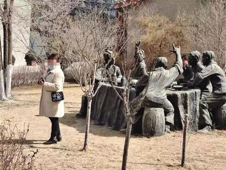 記者在水車博覽園看到,幾名游客翻越圍欄徑自從剛剛吐露新芽的草地上穿過,有的游客在雕塑上攀爬、玩耍,甚至坐臥在雕塑上拍照,這些行為不僅對園內(nèi)設(shè)施造成了損壞,也對個人和城市造成了不好的影響。