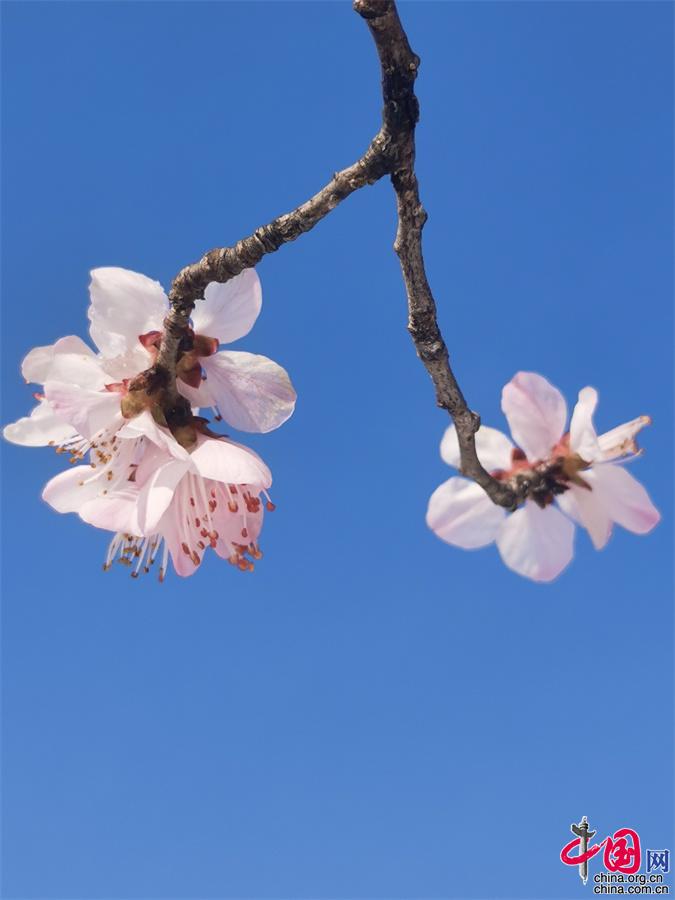 敦煌鳴沙山下李廣杏花競(jìng)相開(kāi)放 美如畫卷 -