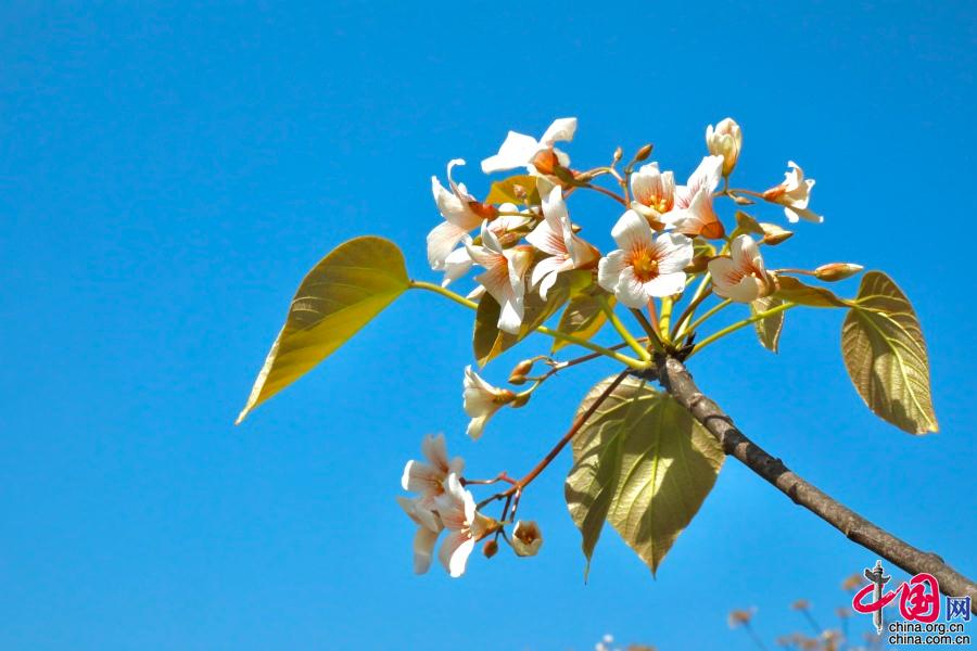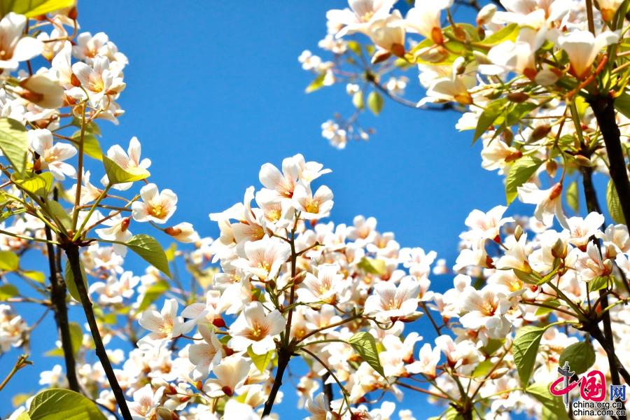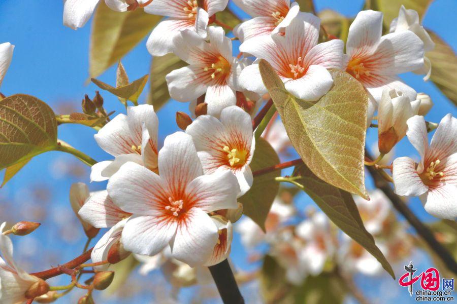 據(jù)了解,油桐的花期較短,僅半個月左右。每年四月中旬,便能看到密集成林的油桐白花簇簇,整個山頭全是花朵的世界。隨著陣陣清風,空中飄起雪白的花雨,藍天白云,落英繽紛,清香馥郁,飄逸山外。