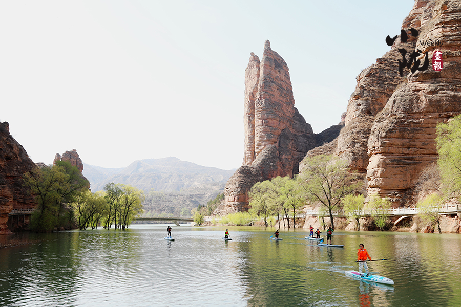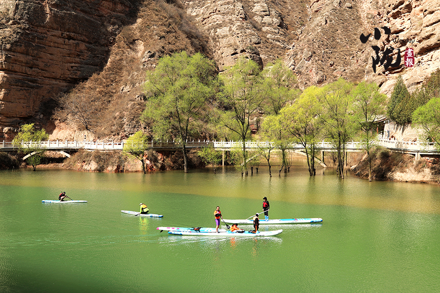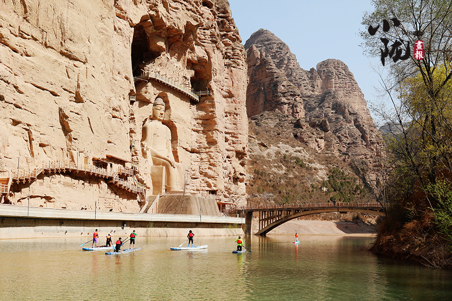 清明前后,炳靈湖水位上漲,寺溝峽谷碧水蕩漾,垂柳依依,景色宜人,槳板愛好者和游客在這里泛舟,以更輕盈的方式邂逅世界文化遺產(chǎn),摩崖大佛、奇峰赤壁、碧水垂柳,構(gòu)成了一幅幅絕美的畫圖。