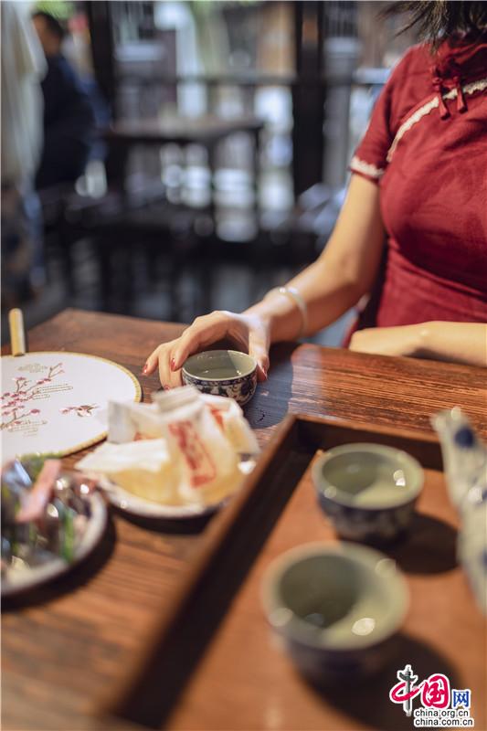 “白茶清歡無(wú)別事”,到蜆園橋畔茶香四溢的煮葉去喝一杯茶,在茶香氤氳中,看窗外人來(lái)人往,感受悠閑慢時(shí)光。提燈慢行在花巷雨巷,時(shí)光在石板路上浸潤(rùn);坐上手搖船穿行于水巷,江南小調(diào)在槳聲燈影中氤氳;水動(dòng)魚(yú)池岸,光影輪轉(zhuǎn)中看魚(yú)群跳躍。
