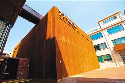 沿著園區(qū)里迂回旋轉(zhuǎn)的鋼梯來到樓頂,眼前豁然開朗——與園區(qū)一街之隔有中國美術(shù)館、三聯(lián)書店,向西是北大紅樓舊址,向南是北京人民藝術(shù)劇院,向北則是中央戲劇學院。“我們在調(diào)研中發(fā)現(xiàn),周邊戲劇、影視資源非常豐富,于是考慮將園區(qū)定位與東城區(qū)推進‘戲劇之城’建設(shè)發(fā)展的方向相契合。”77文創(chuàng)園運營方、東方道樸公司總經(jīng)理李明說。