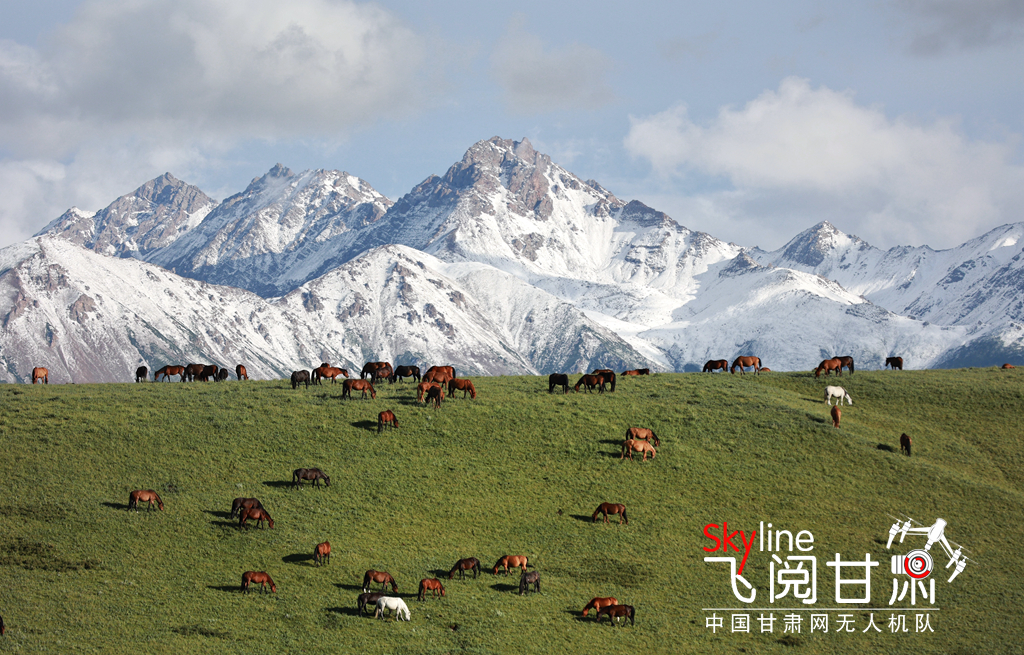 7月21日,甘肅山丹馬場迎來降雨天氣,雨后草原氣溫回升,雪山、草場和馬群構(gòu)成一幅幅美麗的生態(tài)畫卷。