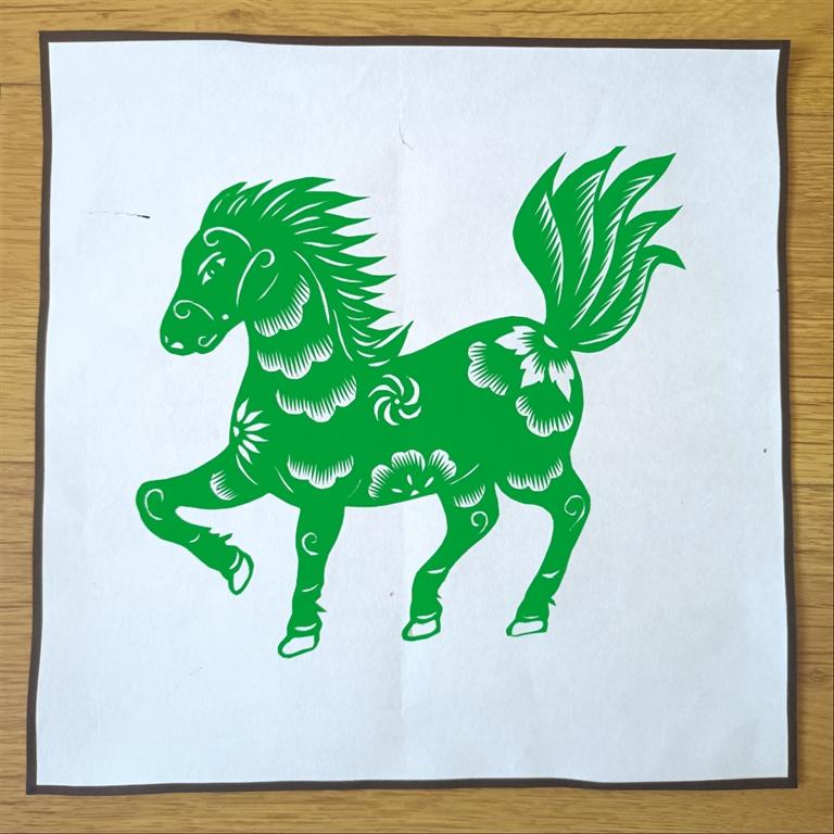 馬作為十二生肖屬相,一直是很重要的剪紙素材,包含著許多美好寓意。吳玲花創(chuàng)作這三匹“綠馬”,也是希望能用剪紙藝術(shù)傳遞祝福,只要大家都能守住“綠碼”,那么此次疫情一定能很快過(guò)去。吳玲花巧用諧音,將平安健康的美好祝愿寄托于這三匹“綠馬”之中。