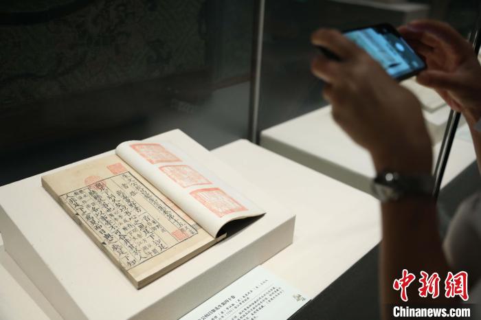 記者3日在展覽現(xiàn)場(chǎng)看到,重點(diǎn)展出的珍貴古籍有宋紹定六年(1233)臨江軍學(xué)刻本《朱文公校昌黎先生集四十卷》,經(jīng)文徵明、王世懋、季振宜等明清藏書(shū)名家遞藏,世所罕見(jiàn),具有極高的文獻(xiàn)和版本價(jià)值;元大德九年(1305)太平路儒學(xué)刻本《漢書(shū)一百卷》版本珍貴,但之前地腳處書(shū)葉、襯紙紙張表面生有大量霉斑,并存在泥漬、糟朽、殘損等,修復(fù)后方能一睹真容,充分體現(xiàn)了修復(fù)人員化腐朽為神奇的力量;明成化九年(1473)內(nèi)府刻本《資治通鑒綱目五十九卷》,由朱熹手定其綱、朱熹門(mén)人趙師淵撰寫(xiě)其目,因該本原瓷青絹質(zhì)書(shū)衣破損面積大,故采用了補(bǔ)絹仿制與染色、做舊等修復(fù)方法,呈現(xiàn)出補(bǔ)絹與原書(shū)衣高度匹配的自然老化效果,非常適合觀眾現(xiàn)場(chǎng)感受“整舊如舊”的古籍修復(fù)原則。