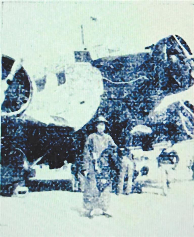教育家莊澤宣飛往蘭州前在歐亞航空公司JU52型客機前留影。引自《隴蜀之游》
