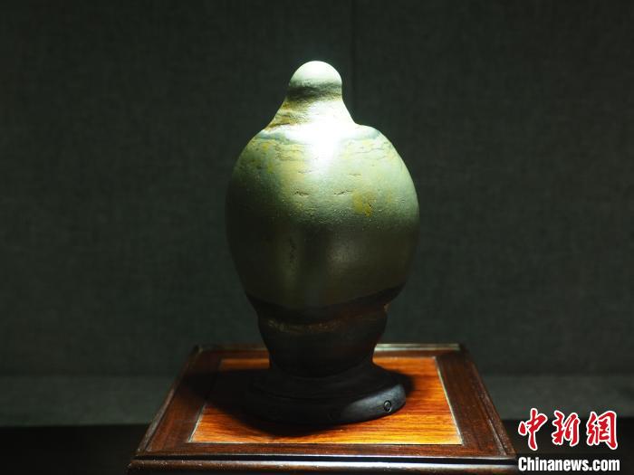 圖為現(xiàn)場(chǎng)的一塊奇石展品形如瓷瓶。李嬌陽 攝