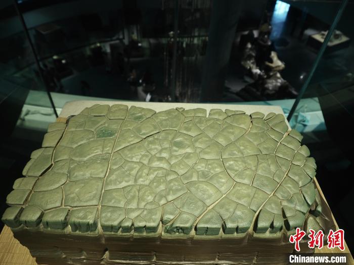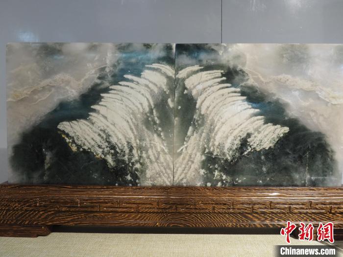 圖為現(xiàn)場(chǎng)展出的一塊奇石宛如碧綠的田地。李嬌陽 攝