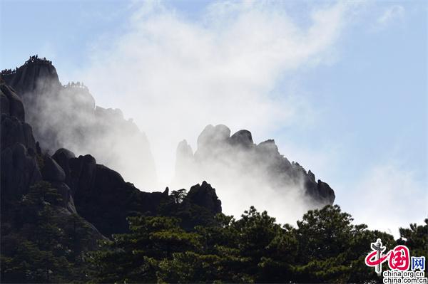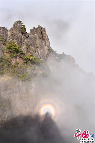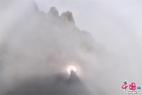 安徽黃山:云海和佛光演變?nèi)鐗?mèng)如幻意境