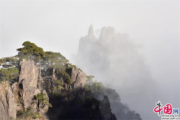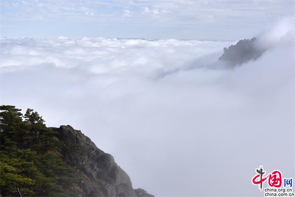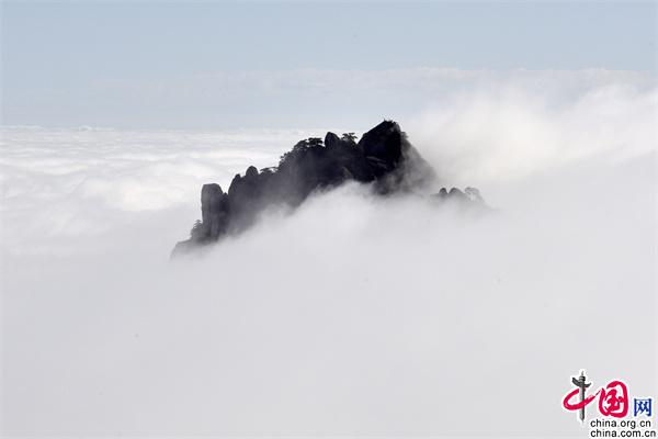 11月23日下午,安徽黃山風(fēng)景區(qū)雨后放晴,山巒之中,云海彌漫,縹緲無形,奇松、怪石和群峰在的云海間時(shí)隱時(shí)現(xiàn),亦夢(mèng)亦幻。