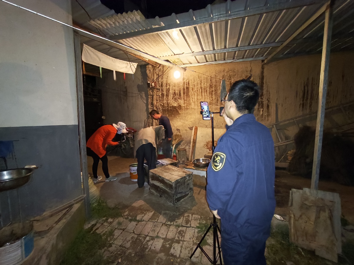 在她身后,蘭州海關(guān)幫扶工作隊員們各司其責(zé),有的手扶打光燈隨時調(diào)整補光,有的緊盯攝像機鏡頭及時調(diào)整畫幅和角度,有的作為觀眾與文香蓮女士眼神交流……儼然一個專業(yè)拍攝團隊。