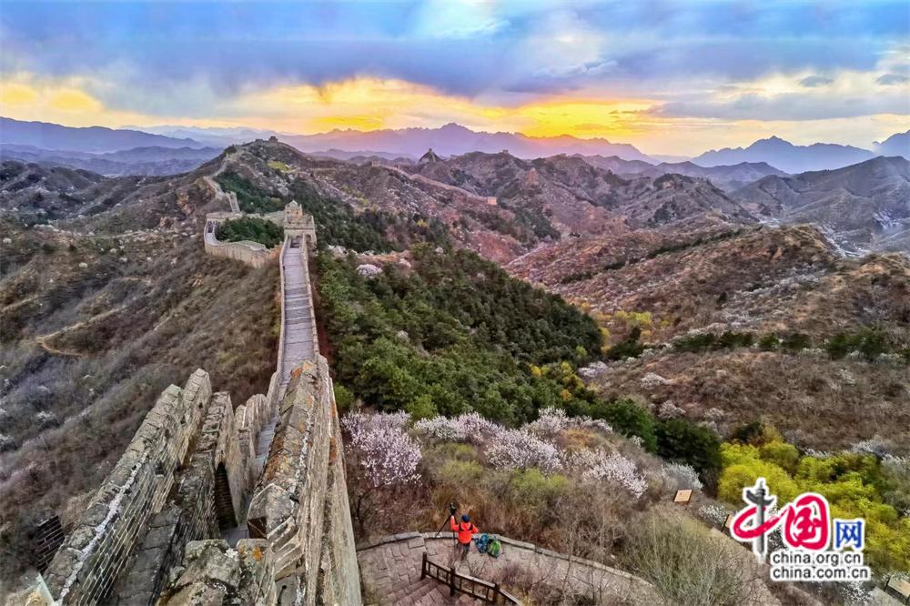 資料圖:當(dāng)長城遇上杏花。 張愛東 攝 圖片和作品內(nèi)容無關(guān)