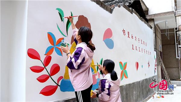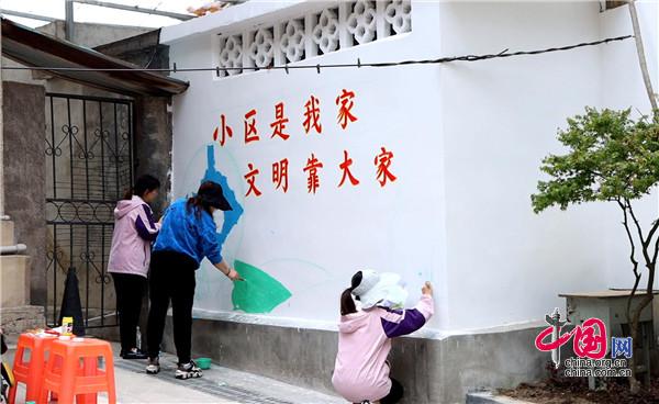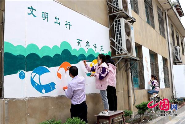 現(xiàn)場,大家手持畫筆和顏料板,相互分工協(xié)作,以墻為紙,認(rèn)真細(xì)致的設(shè)計(jì)墻繪內(nèi)容,筆起筆落間,一幅幅栩栩如生、色彩絢麗的城市文明新畫卷躍然墻上。
