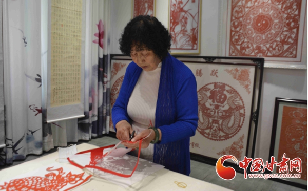 中國甘肅網(wǎng)5月18日訊 (本網(wǎng)記者 田洋 通訊員 丁海琴)5月17日,在瓜州縣文化館內(nèi)一片“沙沙”的裁剪聲中,一張張紅紙,折折剪剪、從內(nèi)往外、從簡到繁,普通的紅紙有了圖案,寫意與寓意步步呈現(xiàn)。