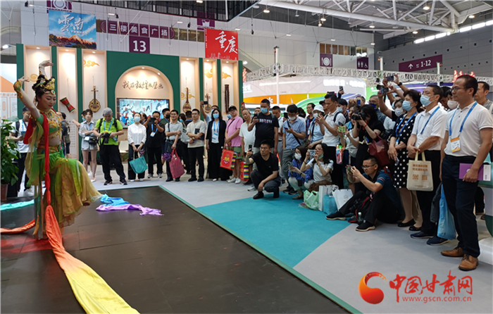 《絲路花雨》第二十一代英娘扮演者、青年舞蹈家康琦是深圳文博會甘肅文化形象大使,她也帶著《絲路花雨》精彩片段走進(jìn)如意甘肅館,用敦煌舞姿為甘肅代言。