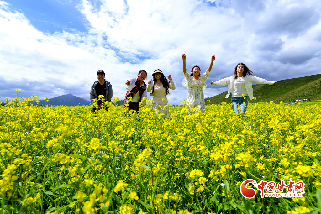 連日來,甘肅省張掖市民樂縣萬畝油菜進(jìn)入盛花期,金黃的油菜花海與草原綠野相連,在藍(lán)天白云的映襯下美不勝收,成為河西走廊地區(qū)的一道別致風(fēng)景,吸引了眾多國(guó)內(nèi)外游客前來觀光旅游。
