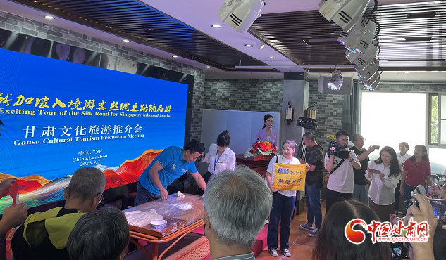 推介會(huì)上,播放了“交響絲路·如意甘肅”文化旅游形象宣傳片。甘肅文化和旅游推介大使王建萍向新加坡賓客詳細(xì)介紹了甘肅多元且極富特色的文化旅游資源,深深地激發(fā)了他們對(duì)甘肅的向往與喜愛之情。蘭州拉面師傅為大家現(xiàn)場(chǎng)表演了特色非遺美食“蘭州牛肉面”,精彩的表演引得現(xiàn)場(chǎng)不時(shí)爆發(fā)出陣陣掌聲。期間,新加坡南方藝術(shù)研究會(huì)合唱團(tuán)還進(jìn)行了合唱表演。