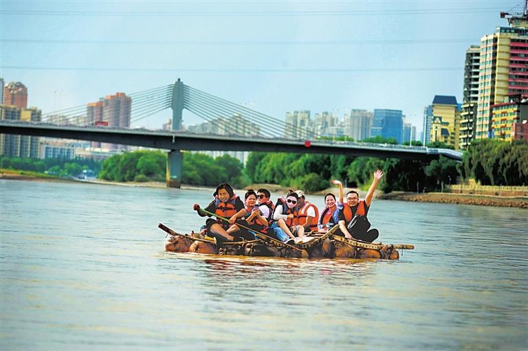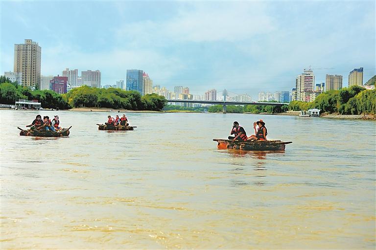 入秋以來(lái),蘭州文旅市場(chǎng)持續(xù)火熱,不少游客前來(lái)旅游。9月14日,游客在黃河蘭州段乘著羊皮筏子漂流黃河,感受與母親河的“零距離”接觸。