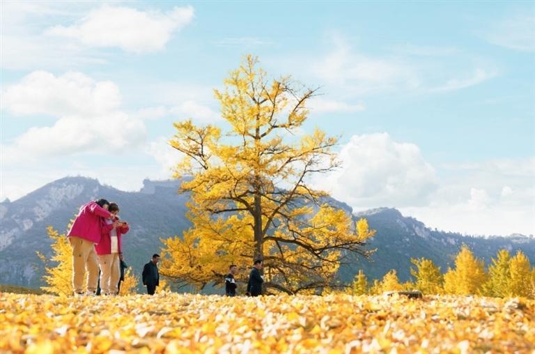 金秋時節(jié),走進徽縣嘉陵鎮(zhèn)田河村,恍若走進了金色的仙境。153棵古銀杏樹滿身金黃,一地落葉似“金色地毯”。銀杏樹下,品銀杏茶、吃銀杏果、享銀杏風(fēng)情,美不勝收,吸引眾多游客前來拍照打卡。如今,美麗風(fēng)景變身“美麗經(jīng)濟”,當?shù)匾劳星赉y杏資源優(yōu)勢,引進“銀杏夢谷”旅游項目,打造集旅游觀光、生態(tài)康養(yǎng)、休閑娛樂、農(nóng)特產(chǎn)品銷售為一體的美麗鄉(xiāng)村旅游示范點,讓千年古樹煥發(fā)新的生機。本報記者 冉創(chuàng)昌 高瓊 攝