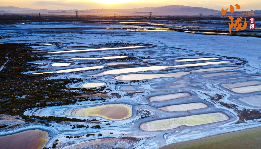 陽(yáng)光穿透晨霧,灑在白墩子鹽沼濕地的每一個(gè)角落。一方方水域隨著光線的變化,呈現(xiàn)出瑰麗的色彩。