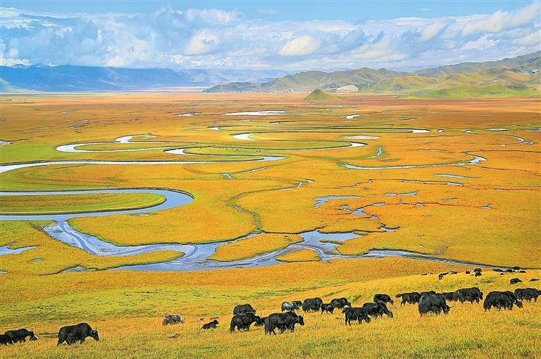 “天下黃河第一彎”“格薩爾發(fā)祥地”“中國賽馬之鄉(xiāng)”“世界最大最美的濕地草原”“藏族民歌彈唱故里”……這就是瑪曲,被譽(yù)為“中華水塔”和黃河的“蓄水池”?,斍卣Z譯為“黃河”,這里歷史文化悠久,旅游資源富集,擁有廣袤的草原、俊秀的濕地。近年來,呈現(xiàn)蓬勃發(fā)展之勢的文旅產(chǎn)業(yè),成為瑪曲縣深挖獨特資源稟賦、激活區(qū)域經(jīng)濟(jì)發(fā)展的一個縮影。