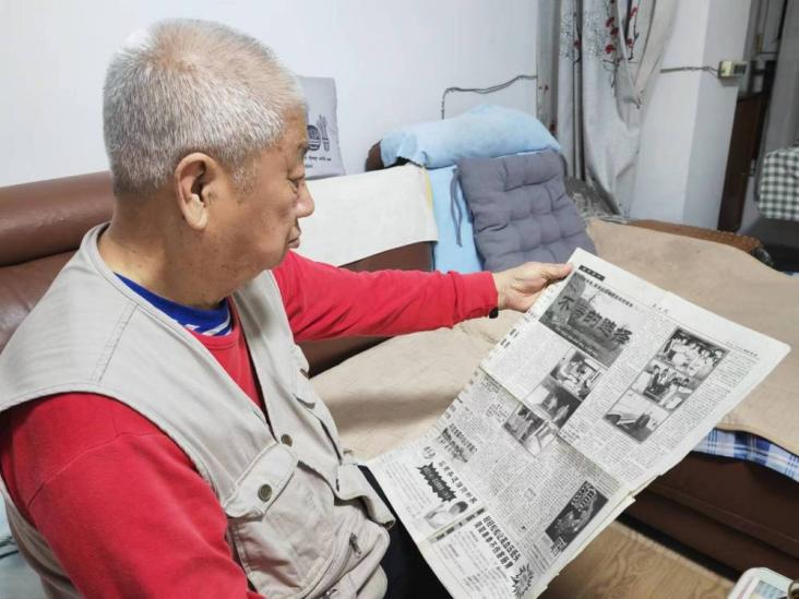 78歲的邢作民在看23年前魏彤欣報(bào)道他的事跡。