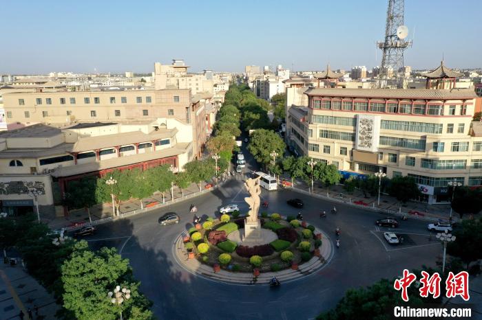 圖為敦煌城市內(nèi)一景,敦煌城標(biāo)——反彈琵琶。(資料圖)張曉亮 攝