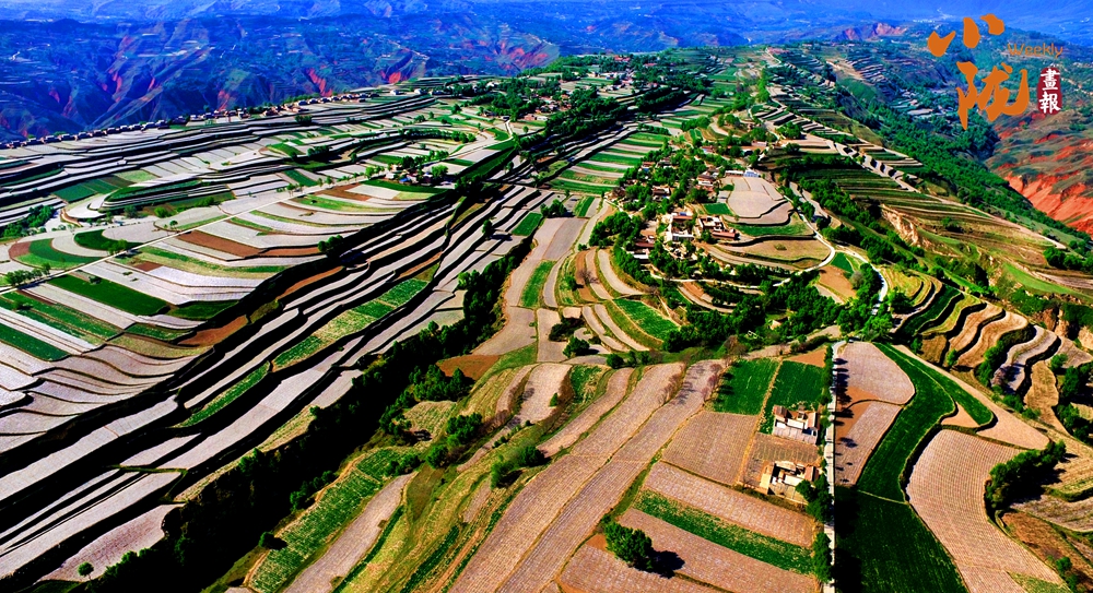 一塊塊梯田,從山峁到山腳,依次而下,大大小小,一層層、一片片,遠(yuǎn)遠(yuǎn)望去,千層萬(wàn)疊,一片紛繁。蔥綠與明黃裝扮的沃野,是季節(jié)的舞衣,也是莊戶人的希望。