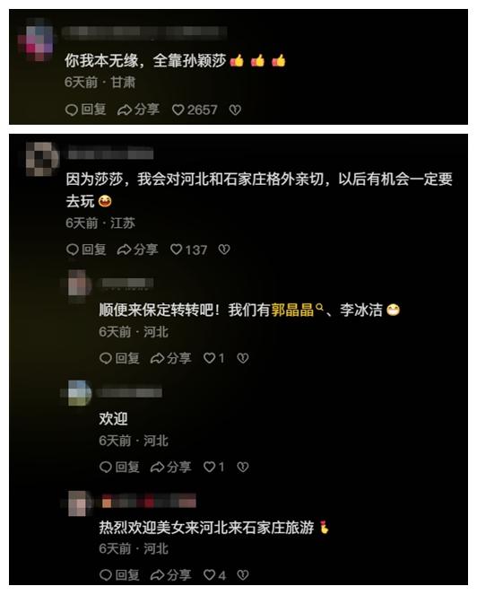 此前,多位網(wǎng)友向石家莊市文化廣電和旅游局官方賬號“石家莊文旅之聲”留言,表示想看國乒名將孫穎莎代言家鄉(xiāng)。公開資料顯示,出生于河北省石家莊市的孫穎莎在此開啟了乒乓球生涯。