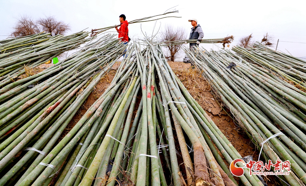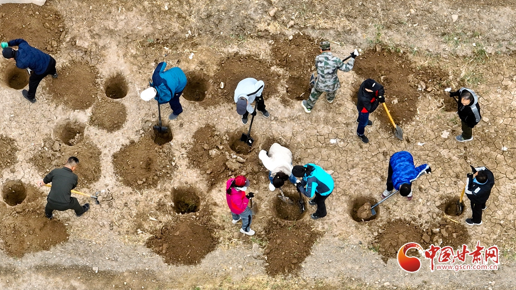 4月9日,甘肅省張掖市甘州區(qū)三閘鎮(zhèn)高寨村義務植樹基地上,千名當?shù)馗刹柯毠ず椭驹刚邆儞]鍬鏟土挖樹坑,掀起農田防護林建設和防沙治沙春季植樹造林熱潮。