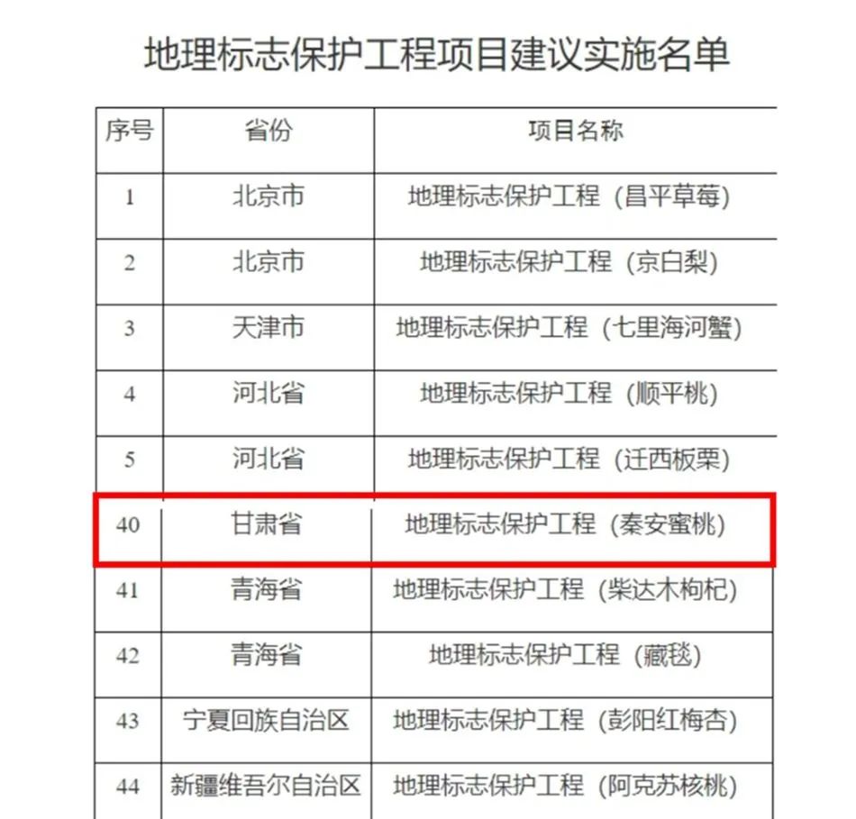 秦安蜜桃上榜2024年國家級地理標(biāo)志保護工程實施名單