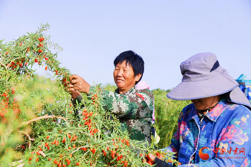 當(dāng)?shù)谝豢|晨光穿透薄霧,照耀在玉門市柳河鎮(zhèn)二道溝村的枸杞田上時(shí),只見一望無際的枸杞林郁郁蔥蔥,綠葉間點(diǎn)綴著密密麻麻的枸杞果。這些果實(shí)色澤鮮艷,飽滿圓潤,散發(fā)著誘人的光澤。農(nóng)戶們穿梭其間,手持籃子或袋子,忙碌而有序地進(jìn)行采摘工作。他們的臉上洋溢著豐收的喜悅,歡聲笑語在田間地頭回蕩,構(gòu)成了一幅幅生動和諧的豐收畫卷。