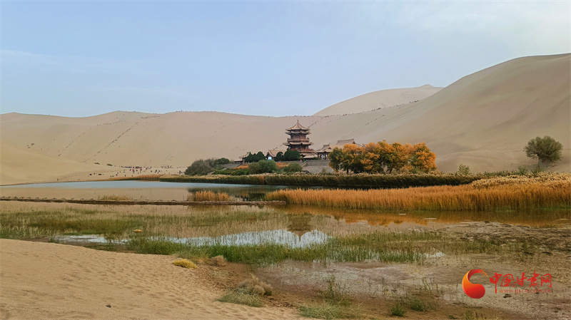 滑沙而下,耳畔回響著沙粒與風(fēng)的和鳴,讓人感受到大自然的鬼斧神工和無(wú)窮魅力。月牙泉在秋日的映襯下,更顯靜謐。