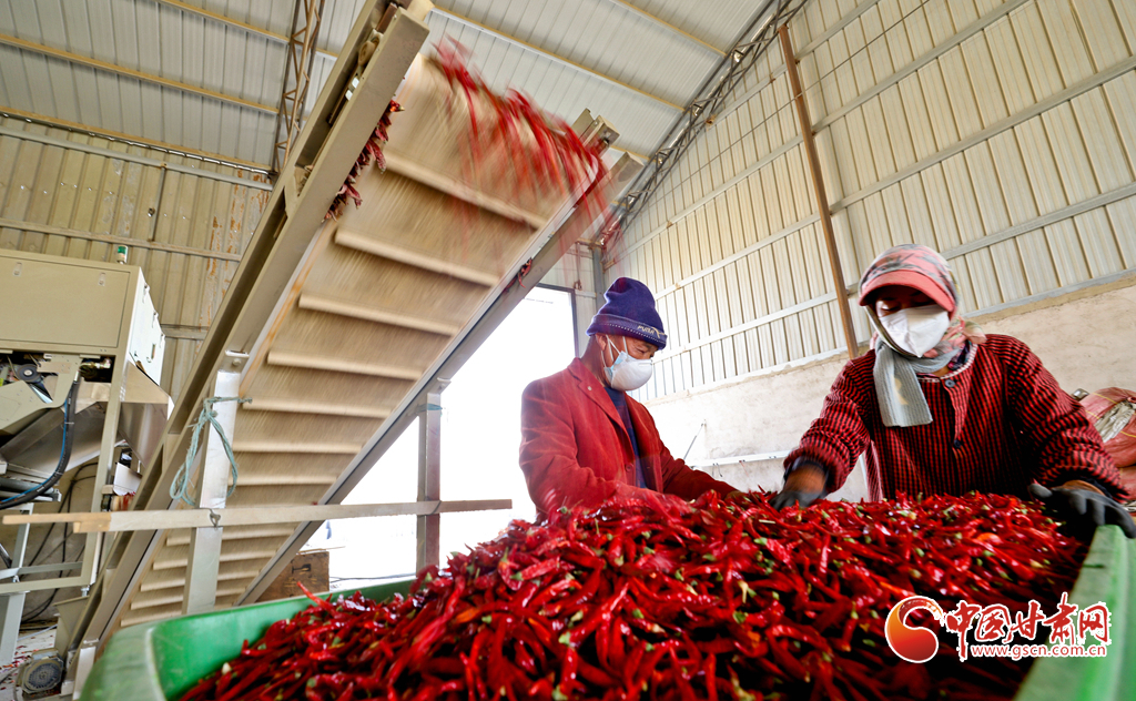 據(jù)悉,臨澤縣光熱資源充足、自然環(huán)境良好,適宜紅辣椒種植,生產(chǎn)出的辣椒干紅色素含量高,干物質(zhì)積累多,已成為國(guó)內(nèi)眾多辣椒食品生產(chǎn)廠家和色素加工企業(yè)的首選原料。今年,當(dāng)?shù)夭粩鄡?yōu)化農(nóng)業(yè)產(chǎn)業(yè)結(jié)構(gòu),采用“企業(yè)+合作社+基地+農(nóng)戶”生產(chǎn)模式,引導(dǎo)農(nóng)民種植3.2萬(wàn)多畝紅辣椒,可生產(chǎn)加工紅辣椒干1.6萬(wàn)多噸。目前,十幾家紅辣椒干加工企業(yè)正在加班加點(diǎn)為各地客商加工訂單紅辣椒干。