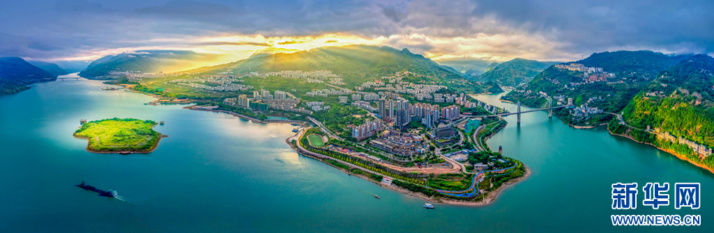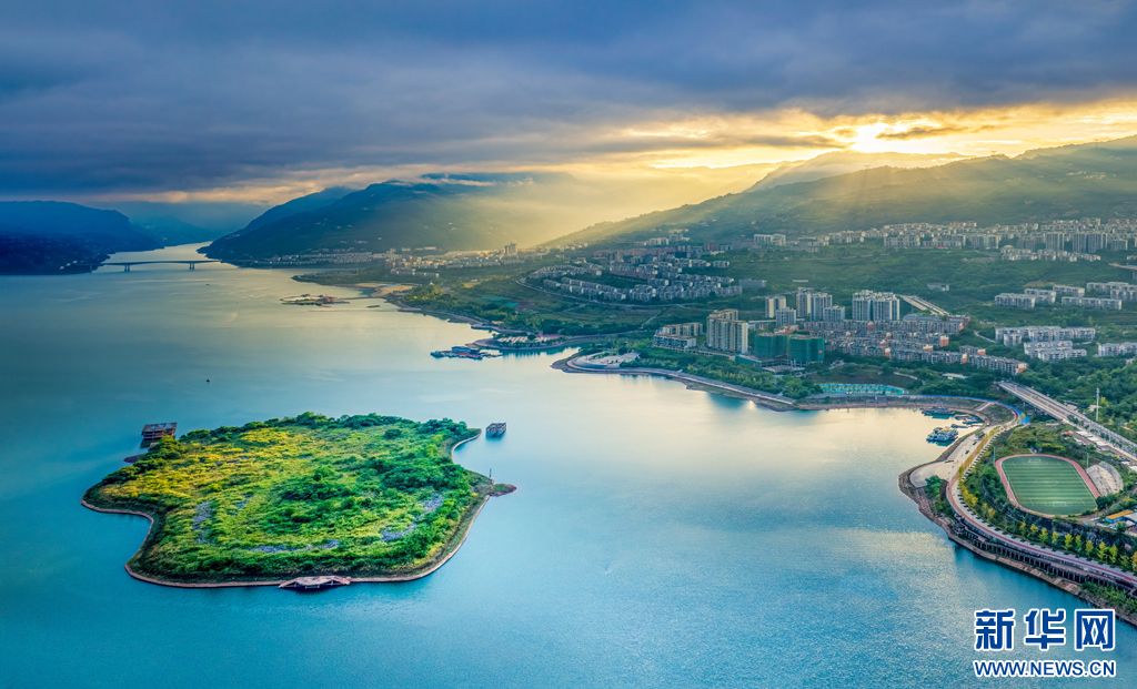 朝陽映襯下的江畔小城綏江,水清岸綠景美(10月23日攝)。新華網(wǎng)發(fā)(曾三東 攝)